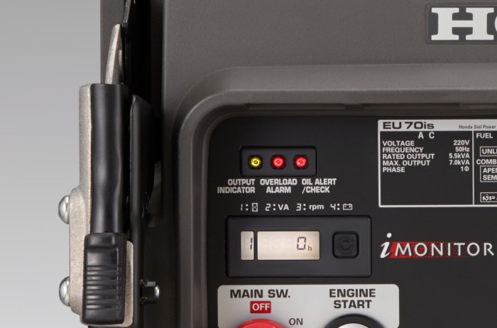 For simple operation and diagnostics, the EU70iS features Honda's ‘i-Monitor’ liquid crystal display which provides operators with information about the generator's performance. Combined with a low oil alert system to protect its engine, and easy maintenance, you'll benefit from long term cost savings.