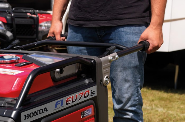 The fuel injection system also eliminates any messy fuel gunk which may be stuck in carburetor models meaning less hassle and more time for it to be put to work. Moving, storing and transporting the EU70iS is made simple with a Two Push 'H' shaped fold-down handle and large diameter wheels. This ensures customers who need the generator for multiple purposes can move it with ease.